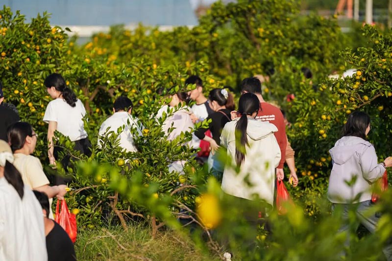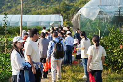 行程的尾声,定格在金黄灿烂的橘园。大家亲手采撷枝头最饱满的果实,品尝到的是秋日的清甜,是付出与收获的满足。采摘间的闲谈笑语,轻轻驱散了一天的疲惫,也为这场山海之约画上了圆满而甜蜜的句点。