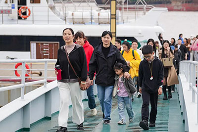 午后,队伍兵分两路,开启了悠闲的探索时光。一路前往码头,乘船出海,在波澜微涌的海面上观光,感受海天一色的辽阔;另一路则漫步于古朴的渔港古城,在青石板路与斑驳的老墙间,聆听岁月的回响。