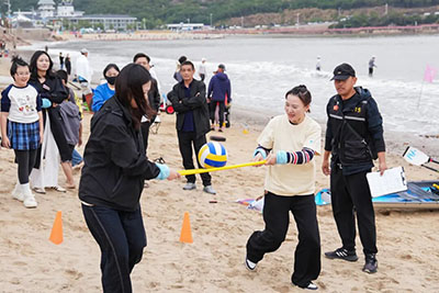破冰之后,期待已久的趣味运动会将现场热情彻底点燃。“摸石过河”的谨慎专注,“沙滩抢险”的紧张刺激,“穿越火线”的默契配合……每一项比赛都是智慧与体力的双重考验。沙滩上充满了欢声笑语与加油呐喊。